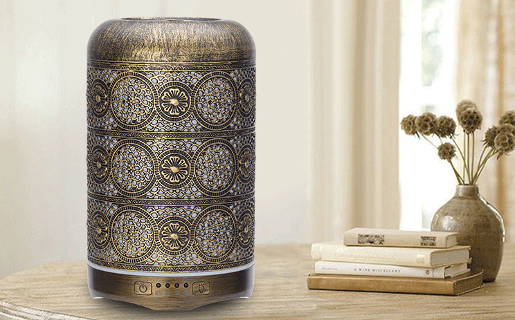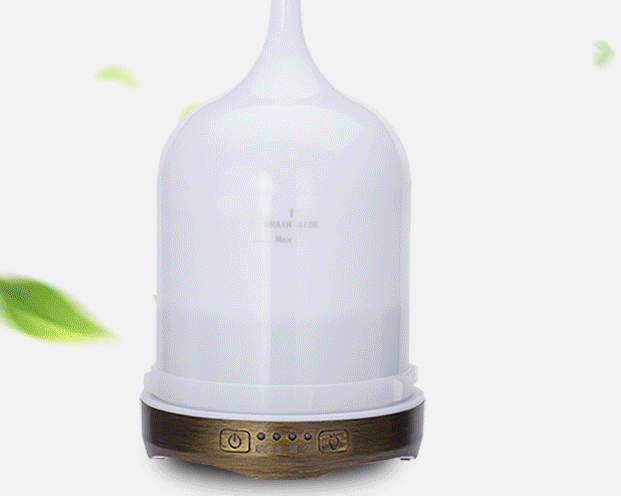 3. Press the left time button on the aromatherapy humidifier and start the work of the aromatherapy humidifier. The corresponding green LED working indicator lights up (the wetting time can be pressed first times: automatic spray, second times: 1 hours, third times: 3 hours fourth times: 5 hours fifth times: close the spray), at the same time, the fog begins to fog.