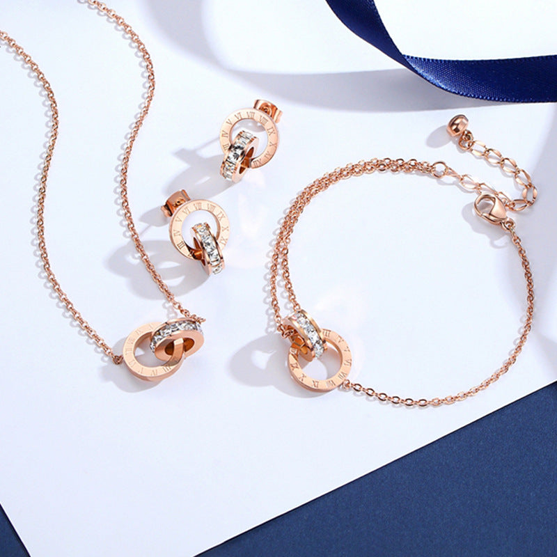 Diamond inlaid zircon titanium steel bracelet